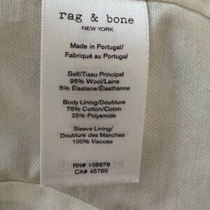 Never Worn Rag & Bone 95% wool 5% Elastane Light weight longish blazer. Perfect for work or with jeans.