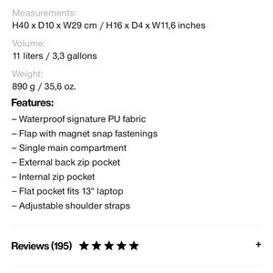 The laptop pocket fits a 13" laptop with sleeve, making the squared backpack a perfect computer-ready staple for commuting on bike or by foot.