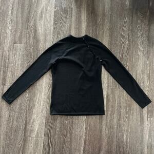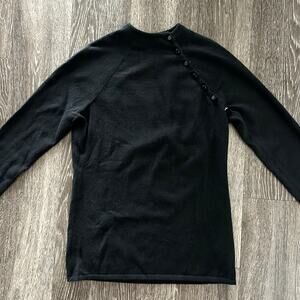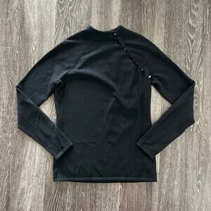 NWOT Ralph Lauren Black Cashmere Sweater Sz M Asymmetrical Button Mock Neck Top