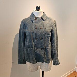 NWOT Ralph Lauren Linen Blend Double Breasted Distressed Denim Jacket, XS