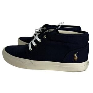 Step up your casual style with these brand new without tags Ralph Lauren Polo mid shoes! These stylish shoes feature a classic blue canvas upper, perfect for everyday wear. The iconic Polo logo adds a touch of sophistication, while the comfortable design ensures all-day comfort.