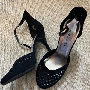 NWOT RAMPAGE "ROBYN" New Black Stiletto High Heel Shoes w/Ankle Strap Women's 8 M