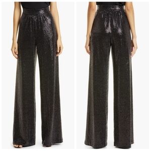 NWOT Ramy Brook Gavin Metallic Wide Leg Pant Black 14