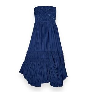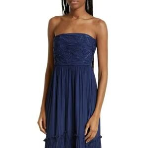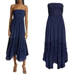 NWOT Ramy Brook Ingrid Beaded Strapless Midi Maxi Dress Spring Navy Blue Tiered