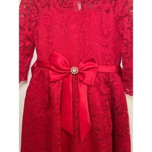 NWOT Rare Editions Red Lace Dress Holiday Special Occasion Long Sleeve Dress 6x