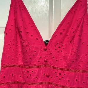 Never worn, elastic back, adjustable straps, button front, deep v-neck