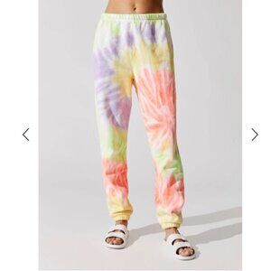 NWOT Re/Done x Hanes Original 80's Neon Spiral Dye Sweatpant. Size: Small Brand Color: Neon Spiral Dye (a mix if NEON colors of yellow, coral orange, purple, green, and white)