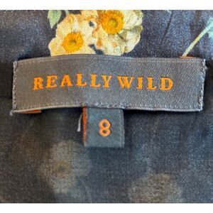 NWOT Really Wild Midi Dress 100% SILK Dress Blue w/ Floral Fully Lined UK 8 US 2