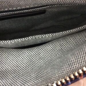 Pretty floral-printed vinyl trimmed with luxe leather with silver hardware and a removable chain strap. It has a detachable chain and leather shoulder strap with a 22½" drop. Bag has a top zip closure and two inside open pockets. One outside zip pocket with hooked flap. Bottom has four protective metal feet. Cotton lined. Bag measures 9"W x 6.5"H x 2"D. Dust cover and care card included.