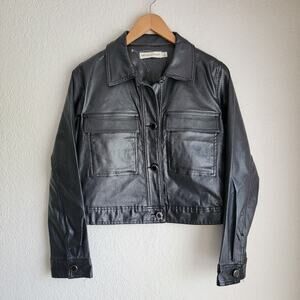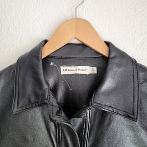 NWOT Rebecca Minkoff Shimmer Vegan Leather Cropped Jacket Black Button Up Medium