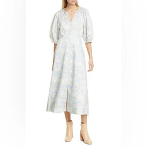 Rebecca Taylor Balloon Sleeve Floral Cotton Midi Dress