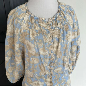 NWOT Rebecca Taylor Balloon Sleeve Floral Cotton Midi Dress Romantic Bohemian 10
