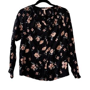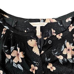 NWOT Rebecca Taylor Black Floral Jacquard Print Daniella Silk Blouse Size 2 Small