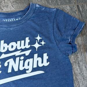 NWOT Recycled Karma Teegrams About Last Night Relaxed fit Tee Vintage Blue Small