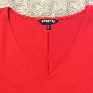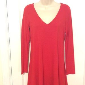 Long sleeve red dress from Express. Never been worn in new condition without the tags. It is 33 1/2 " long, and about 15 1/2" armpit to armpit. Size small but the material can stretch some to fit a medium as well. This dress is slightly flared at the bottom and looks so cute on!