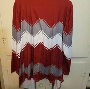 Elevate your casual style with this stunning 3-piece set, perfect for a cozy yet chic look. This brand new, never worn outfit features a comfortable pair of red leggings and a matching red tank top, creating a sleek, monochromatic base. The showstopper is the beautiful, lightweight cardigan with a unique red, white, and gray pattern, adding a pop of style.
