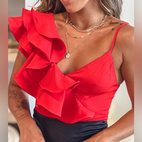 NWOT Red Ruffle Bodysuit