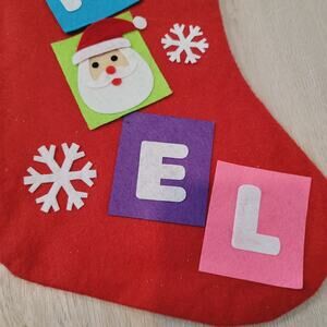 NWOT Red & White Christmas Noel Stocking. Red & White with NOEL in the front. Cute Santa and snowflakes. Lightweight soft fabric. Hanging loop. 16''x7''