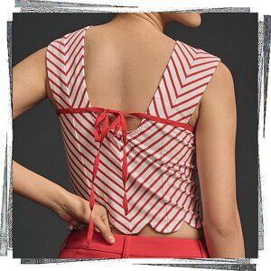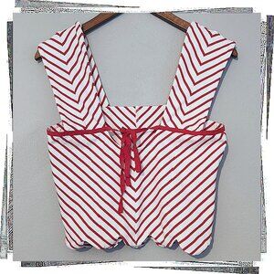 NWOT: Red & White Striped Square-Neck Cropped Top w Back Tie (S) by Maeve