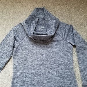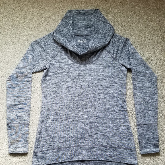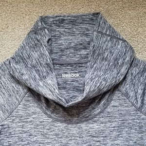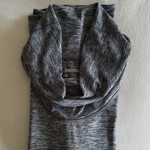 NWOT Reebok active wear Top. Top is size medium, has a cowl neck, thumb holes in sleeves and is gray-heathered. Never worn, just washed.