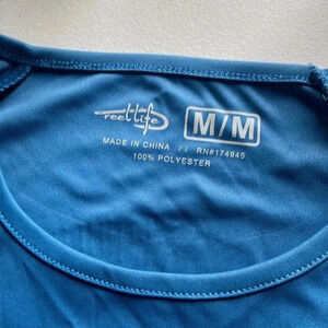 NWOT Reel Life blue sunset and wave graphic sweatwicking shirt, size medium