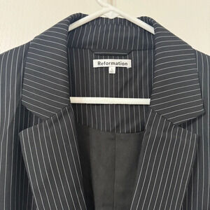 NWOT Reformation Classic Relaxed Lapel Blazer BLACK & WHITE STRIPE Size Large