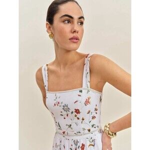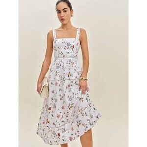 NWOT Reformation Everett Linen Corsini Floral White Midi Dress |Retail $298