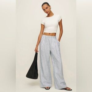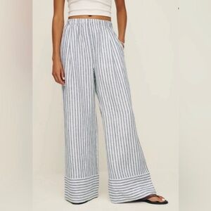 NWOT Reformation Fernando Wide Leg Linen Pant in Antibes Stripe in size 2X. I waited too long to return these and took the tags off, but never wore them. This is a cute Ref wide leg linen pant with an elastic waist for an easy fit. 100% linen. Brand new condition :)