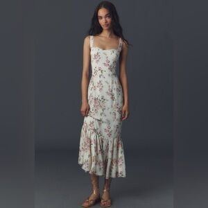 (NWOT) Reformation Ivory Midi Dress with Rose Floral Pattern