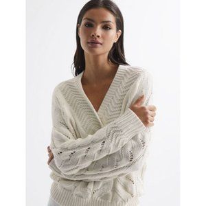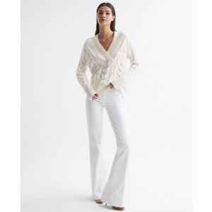 NWOT Reiss Claudine Knit Cable Shawl Neck Jumper Sweater White Ivory Cotton