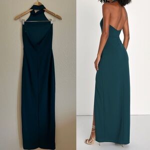 NWOT Remarkable Elegance Teal Backless Halter Column Maxi Dress
