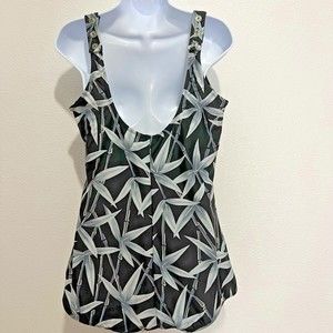 NWOT Retail $119 T.H.E. Women's swimsuit, front skirt, Bamboo Print, size XL