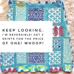 This is a favorite brand of mine! I absolutely love 💕 the fabrics and designs! It’s a reversible skirt. And I love it for the variety it provides! I love how cute the patterns are and they are all so different! Plus, I simply ADORE the stretchy, comfortable, silky-stretchy fabric and the very cool 😎 ruffling edges!