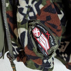 NWOT - Excellent Condition Reversible ZeroXposur Olive Green & Camo Reversible All-Weather Hooded Jacket (4T); Fleece Camo w/2 Pockets; Outer Shell 100 % Polyester w/2 Pockets; & Elastic & Velcro Cuffs;