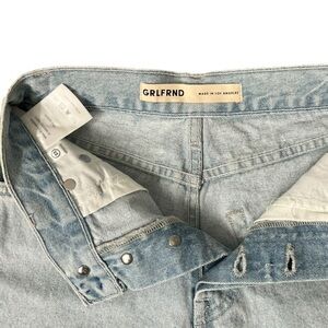 NWOT Revolve GRLFRND Super High Rise Vintage Cutoff Jean Shorts. Size 23. Light wash denim. No stretch. Raw hem & button down enclosure. 100% cotton. Measurements are in pics, however additional measurements available upon request.