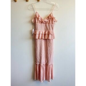 NWOT Song of Style Lucia Midi Dress in Pink Blush Spaghetti Strap Ruffle V Neck