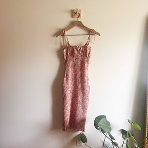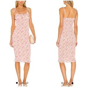 Revolve SNDYS Newport Dress in Pink Floral. Features feminine details, tie straps, full body smocking, floral ditsy print, and lots of stretch. In excellent like new condition. No holes, rips, or stains. Ours is a smoke free home.
