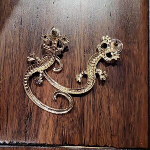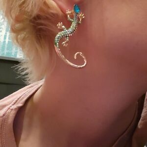 goldtone metal alloy with green enamel inset with ab crystal rhinestones and blue rhinestone heads