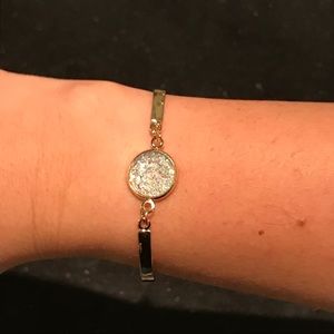 Selling two brand new beautiful bangles. Choose between the white or the pink rhinestones set on a geode. Perfect on its own or to mix with other bracelets. Bracelet length is approx 7.87”. Metal is gold color. Closes with a lobster clasp and can be adjusted to different wrist sizes.