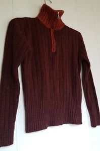 Quarter Zip Dark plum with Burnt orange collar Depending on tight/ loose fit: Womens 2-6 Girls 10-14