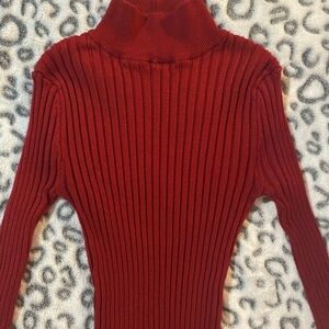 Brand new condition. Worn ONCE only for 2 hours. Deep red mock neck, thick-ribbed sweater. Longer length, closer to tunic style. Super soft & comfortable.
