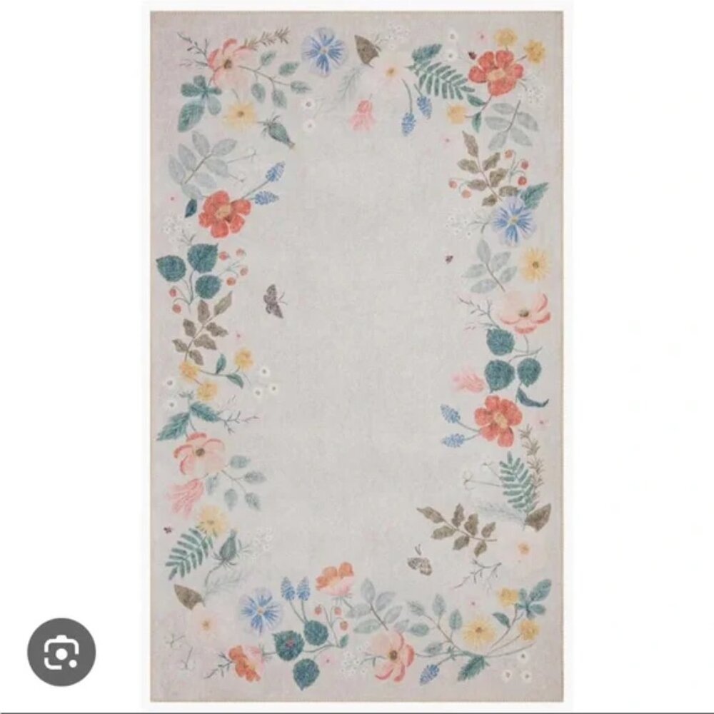 NWOT Rifle Paper Co. x Loloi Atelier Strawberry Fields Border Cream Non-Slip Rug. Add a dose of colorful florals to any corner with a rug from our Atelier collection, created with a skid-resistant backer, perfect for in front of the sink or in an entryway. Vivid colors are achieved through printing the design on a powerloomed base. Part of our Rifle Paper Co. × Loloi collection. 2' x 5' runner, 100% polyester, printed power-loomed, skid-resistant backing, 0.19" thickness, bright colors, fine details, and durability are achieved in this rug, which is made of power-loomed polyester and finished with a printed design. Tan with colorful flowers, strawberries and butterflies. This would be perfect in a little girl's room, nursery, playroom, bathroom, hallway, laundry room, closet, entryway, or anywhere else you can think of! Will be rolled when shipped.
