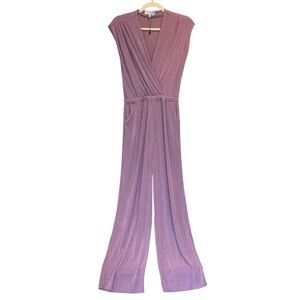 NWOT Ripley Rader Slinky Lavender Jumpsuit, Short Sleeves,V-Neck,Wide Leg, 1-XS