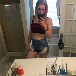 NWOT Ripped denim high waisted jean shorts.