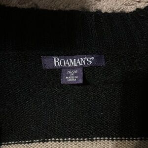 NWOT Roaman’s Black and Beige Fuzzy Stripe Button Front Sweater Size 2X