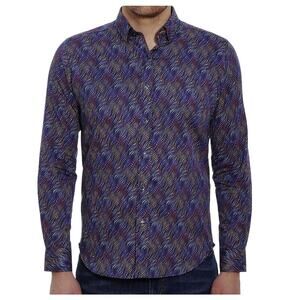 NWOT Robert Graham Tilston Tailored Fit Button Down Purple Wave Shirt Men XL
