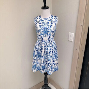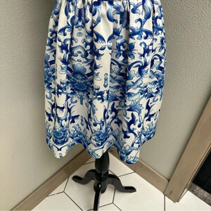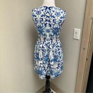 Roberto Cavalli Porcelain Print Silk Dress Blue and White Ornamental