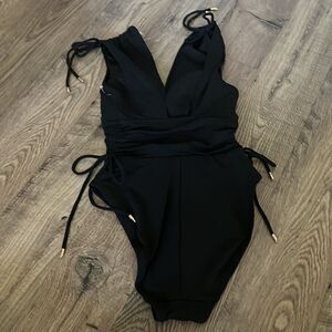 NWOT Robin Piccone Aubrey V Plunge One Piece Swimsuit Black 2