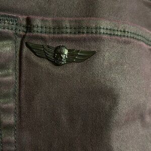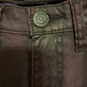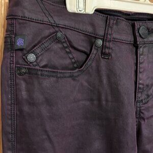 Purple/ black Jeans New. 32 in. Inseam and 16 in. Waist across front. Hem 6 in. Across. Excellent New Condition. Ladies Sz. 6M
