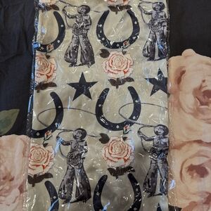 NWOT Rodeo Quincy Johnny Rose wild rag with cowboys horseshoes,and horses